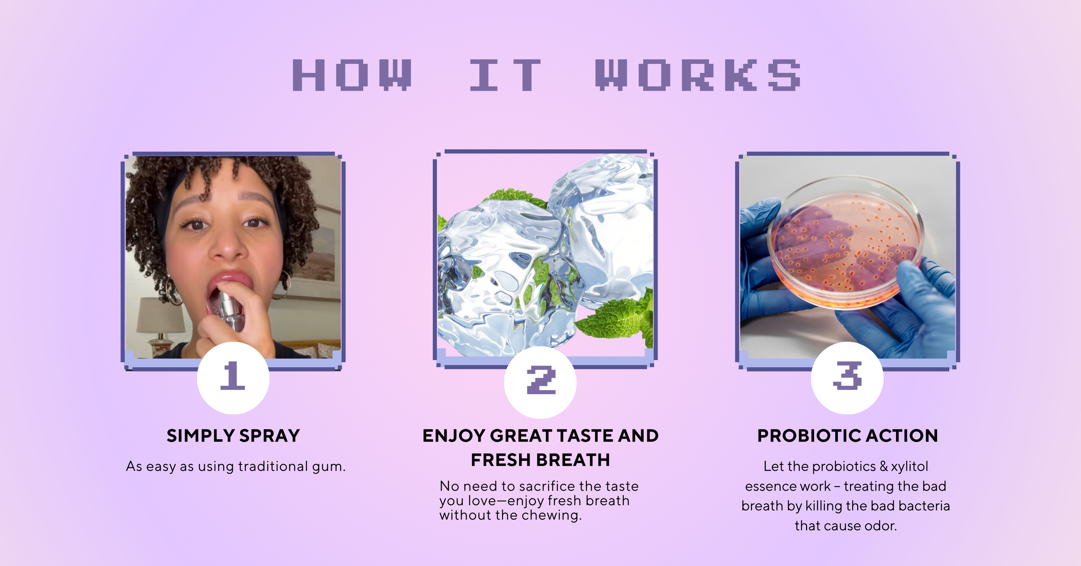 CEEL!KE is a probiotic mouth spray designed to help freshen your breath and promote better oral health. It contains beneficial probiotics that work to balance the bacteria in your mouth, reducing bad breath and supporting your overall oral hygiene. Simply spray it in your mouth as needed for a quick, refreshing burst!